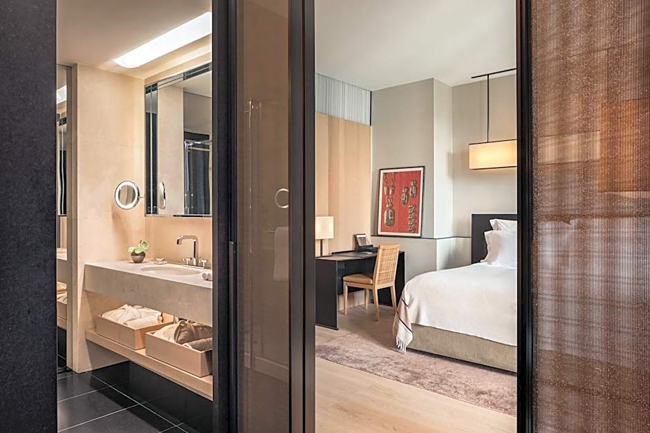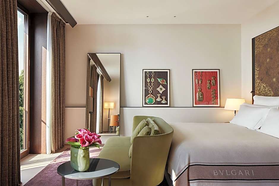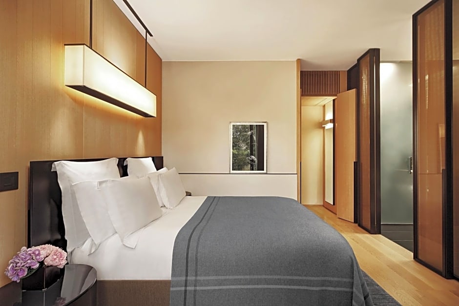 With floor-to-ceiling windows, each room overlooks either the garden or a characteristic Milanese courtyard, and some of them are garden-view corner rooms. They all feature a walk-in closet and a bathroom with a black granite bath and a Navona Travertine shower. This room cannot accommodate extra beds.